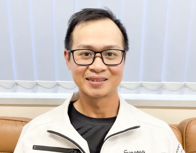 Tôi vào công ty tháng 4 năm 2023, khi đó tôi 31 tuổi. Ở Việt Nam tôi cũng đã làm việc trong lĩnh vực xây dựng. Nhưng vì muốn học hỏi những kỹ thuật ưu tú hơn của Nhật Bản nên tôi đã đến Nhật Bản làm việc. Ban đầu tôi chưa thể quen với tiếng Nhật và môi trường sống xung quanh, nhưng gần đây tôi đã dần thích nghi được. Tôi đã cảm thấy sốc với mùa đông, rất lạnh và tuyết rơi nhiều. Vì đã quen thuộc với sự ấm áp của Việt Nam nơi có nhiệt độ trung bình là 35 độ C nên khi làm việc ngoài trời trong mùa đông của Nhật Bản tôi đã cảm thấy khó khăn. Mặc dù bây giờ tôi đã dần dần quen với điều đó rồi. (cười)